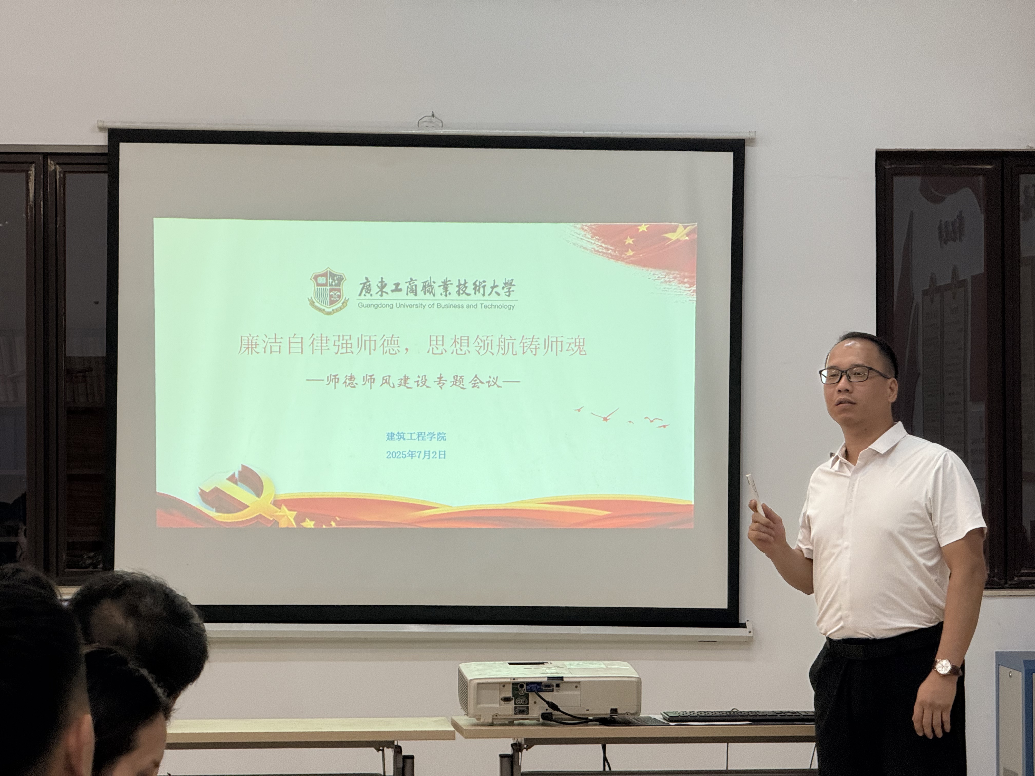 第一,学院党总支书记江涛章指出,师德师风是衡量教师素质的首要标准,引用了《新时代高校教师职业行为十项准则》等政策文件,强调师德师风纳入教师考核并实行“一票否决制”。他还提到,教师的道德品质对学生价值观塑造和社会道德风尚提升影响深远。高校教师在思想观念、职业行为及外部环境方面面临的挑战,指出部分教师存在功利主义倾向,过于追求职称晋升和科研成果数量,忽视教育本质和学生成长。