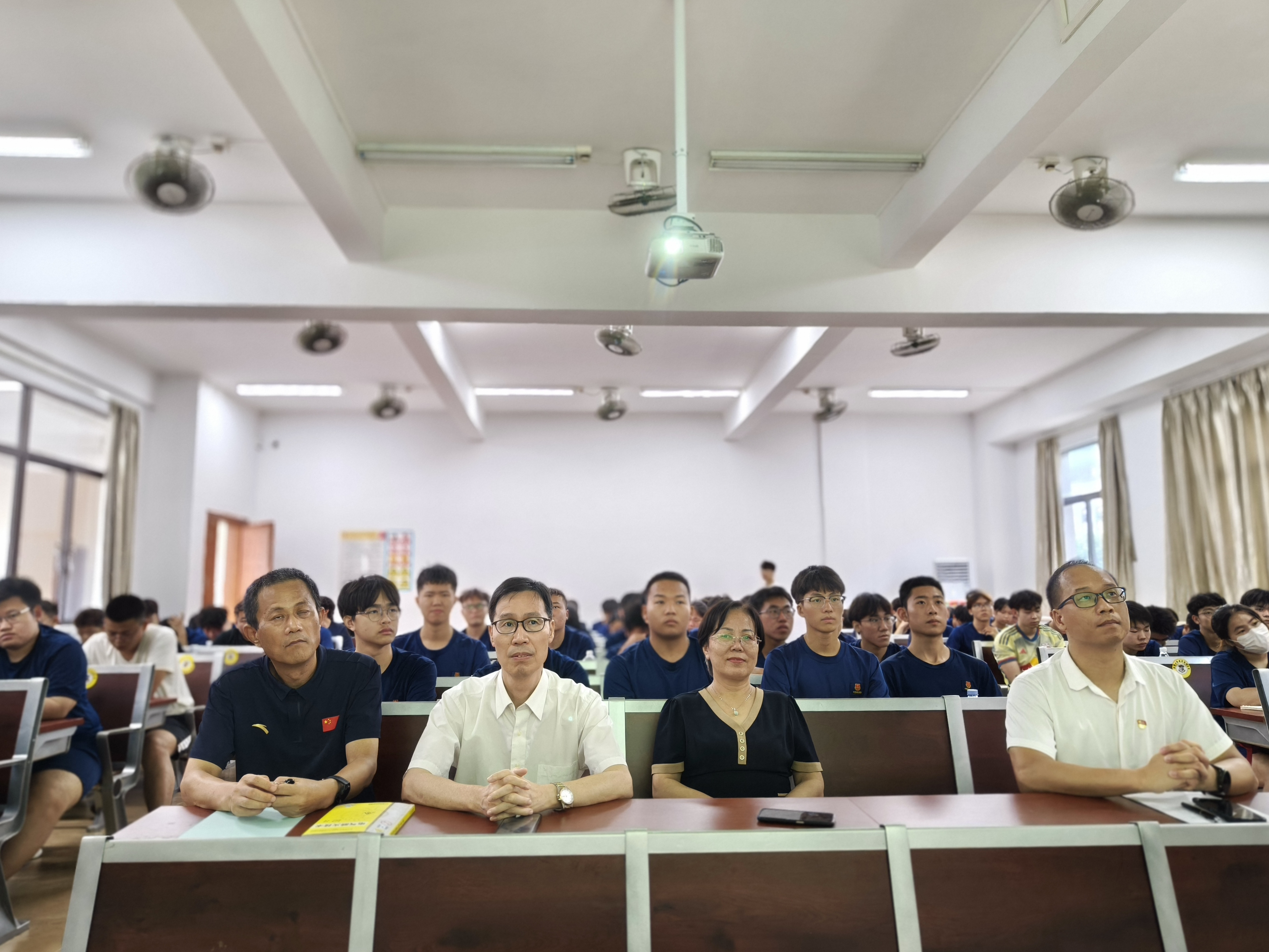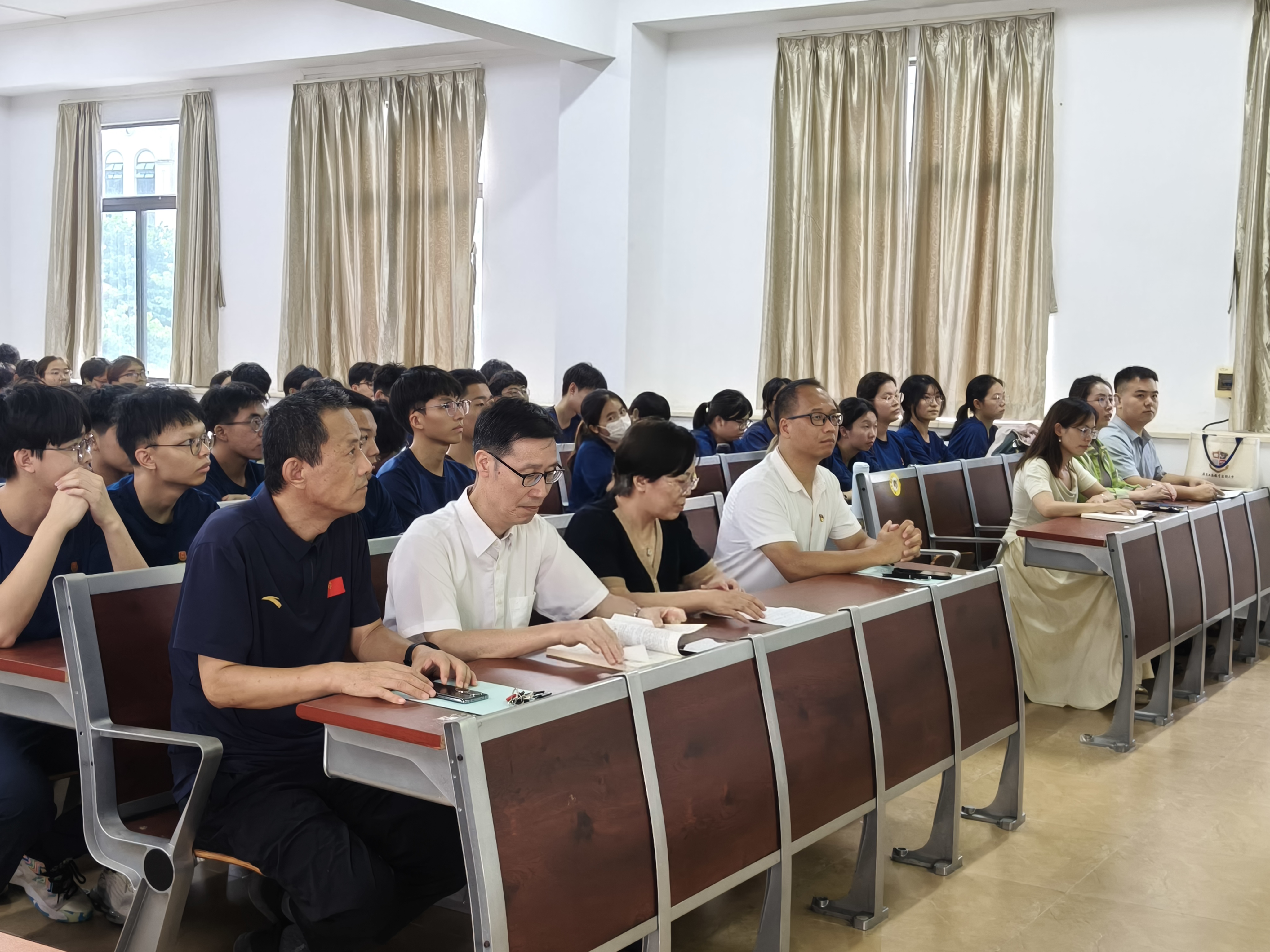 最后,江涛章引用总书记关于青春奋斗的金句 ——“奋斗是青春最亮丽的底色,行动是青年最有效的磨砺”。总书记的话语振聋发聩,让同学们瞬间领悟到青春的真谛。江涛章借此机会,对同学们提出了明确要求:要坚定理想信念,将个人理想与国家发展紧密相连,树立为国家富强、民族振兴而奋斗的远大志向;培育高尚品格,践行社会主义核心价值观,讲道德、遵道德、守道德,成为有品德、有修养的新时代青年;练就过硬本领,珍惜大学时光,努力学习专业知识,积极参加各类实践活动,提高自身综合素质;勇于创新创造,在学习与生活中敢于突破传统思维,积极探索新方法、新途径,为社会发展贡献新思路、新方案;矢志艰苦奋斗,无论面对何种困难与挑战,都要保持坚韧不拔的意志,脚踏实地,一步一个脚印地为实现目标而努力拼搏。