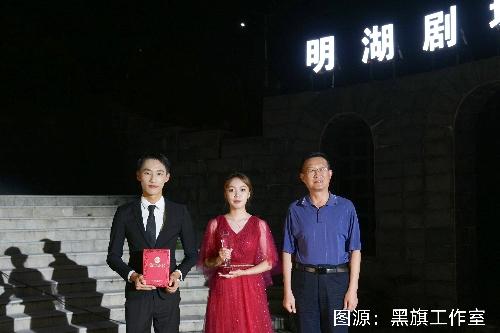 图为校党委宣传部张金柱部长为蔡萱宣和李哲煌颁奖