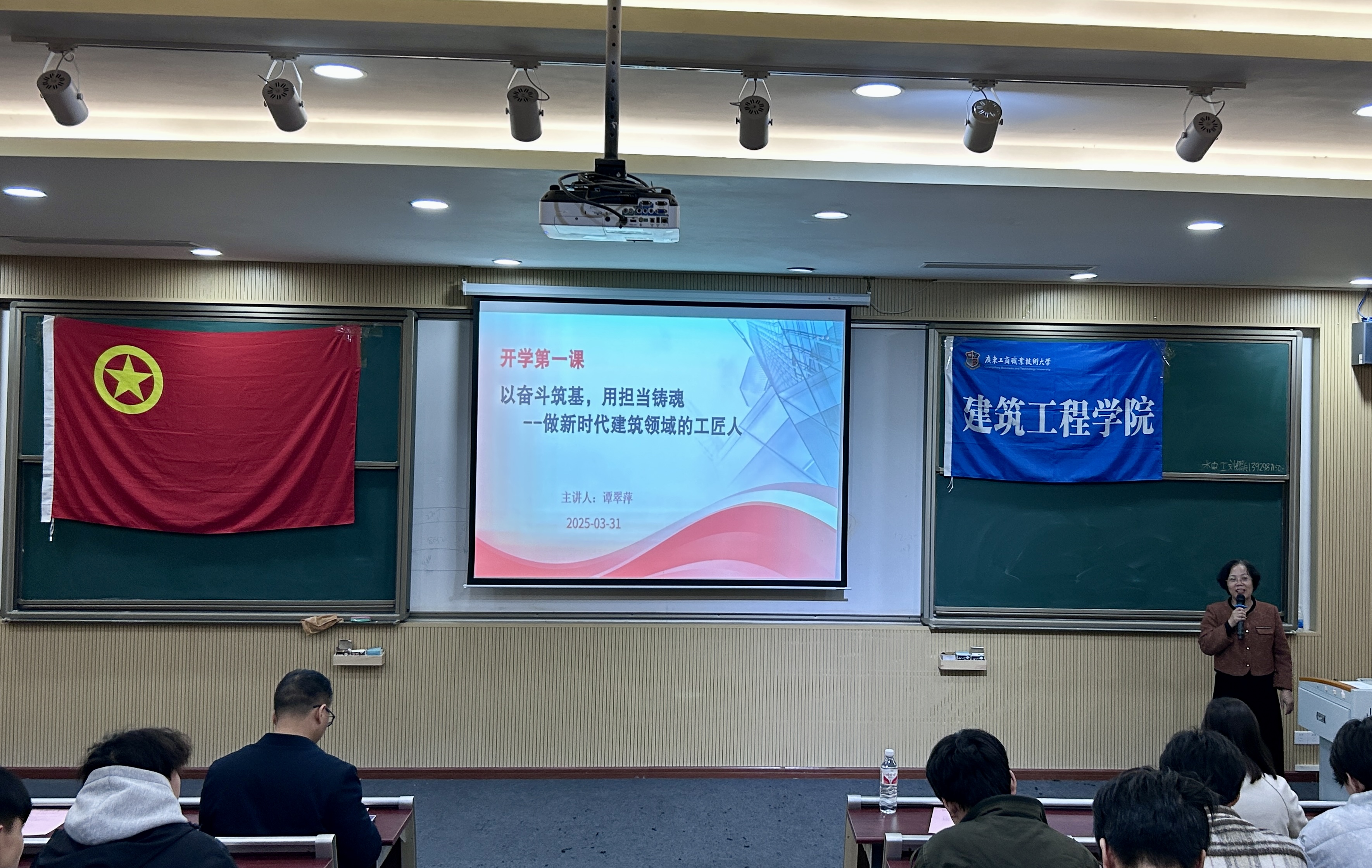yl8cc永利线路检测中心于2025年3月31日16:40在广东工商职业技术大学星湖校区笃行楼113开展以奋斗筑基,用担当铸魂--做新时代建筑领域的工匠人思政院长第一课,参会有党总支书记江涛章、全院辅导员以及全体在校生。