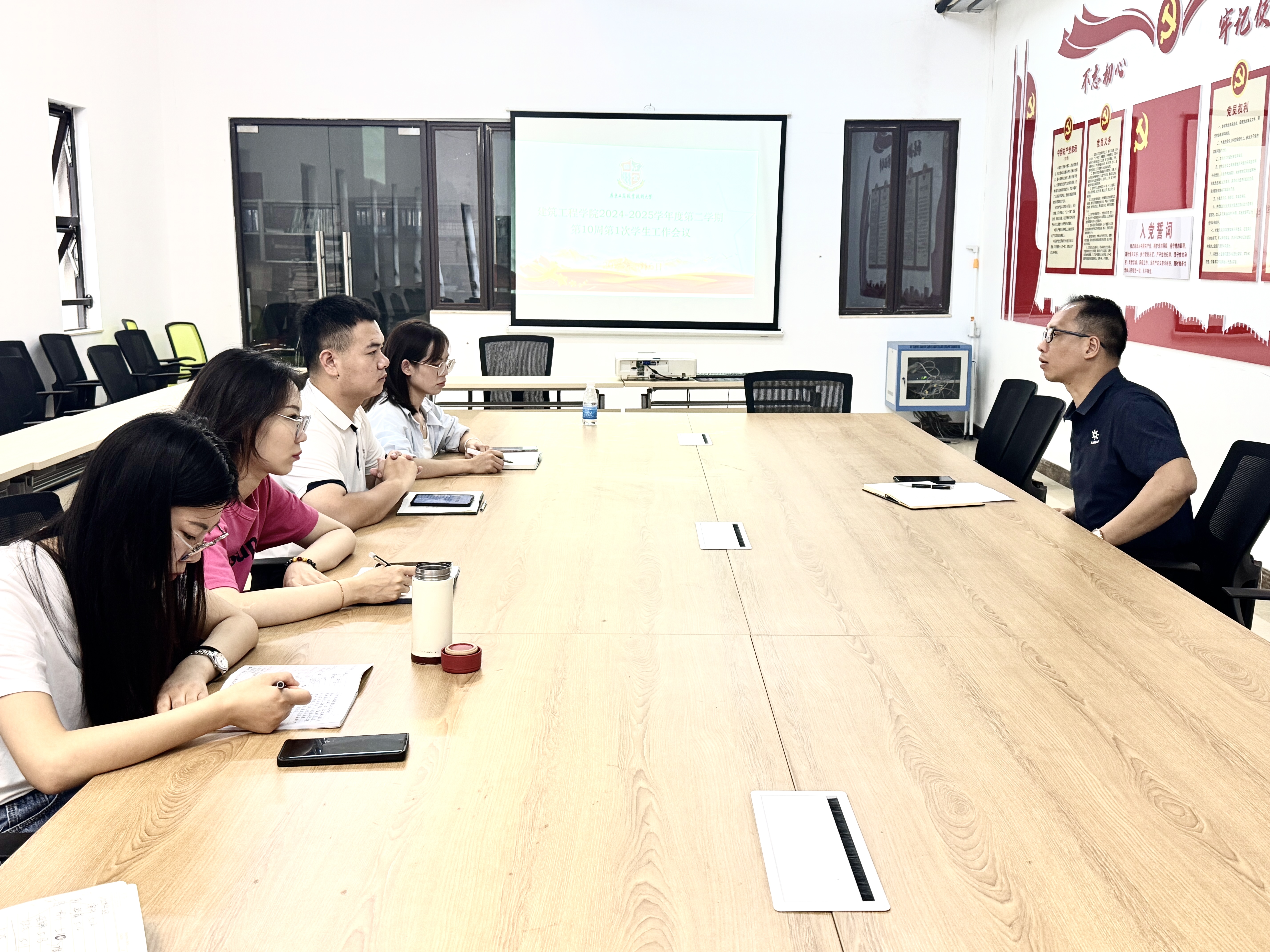 202556日上午840分,yl8cc永利线路检测中心在学院在D301会议室召开第十周第一次学生工作会议,全面部署阶段性重点工作。学院党总支书记江涛章主持会议、全体辅导员出席会议。