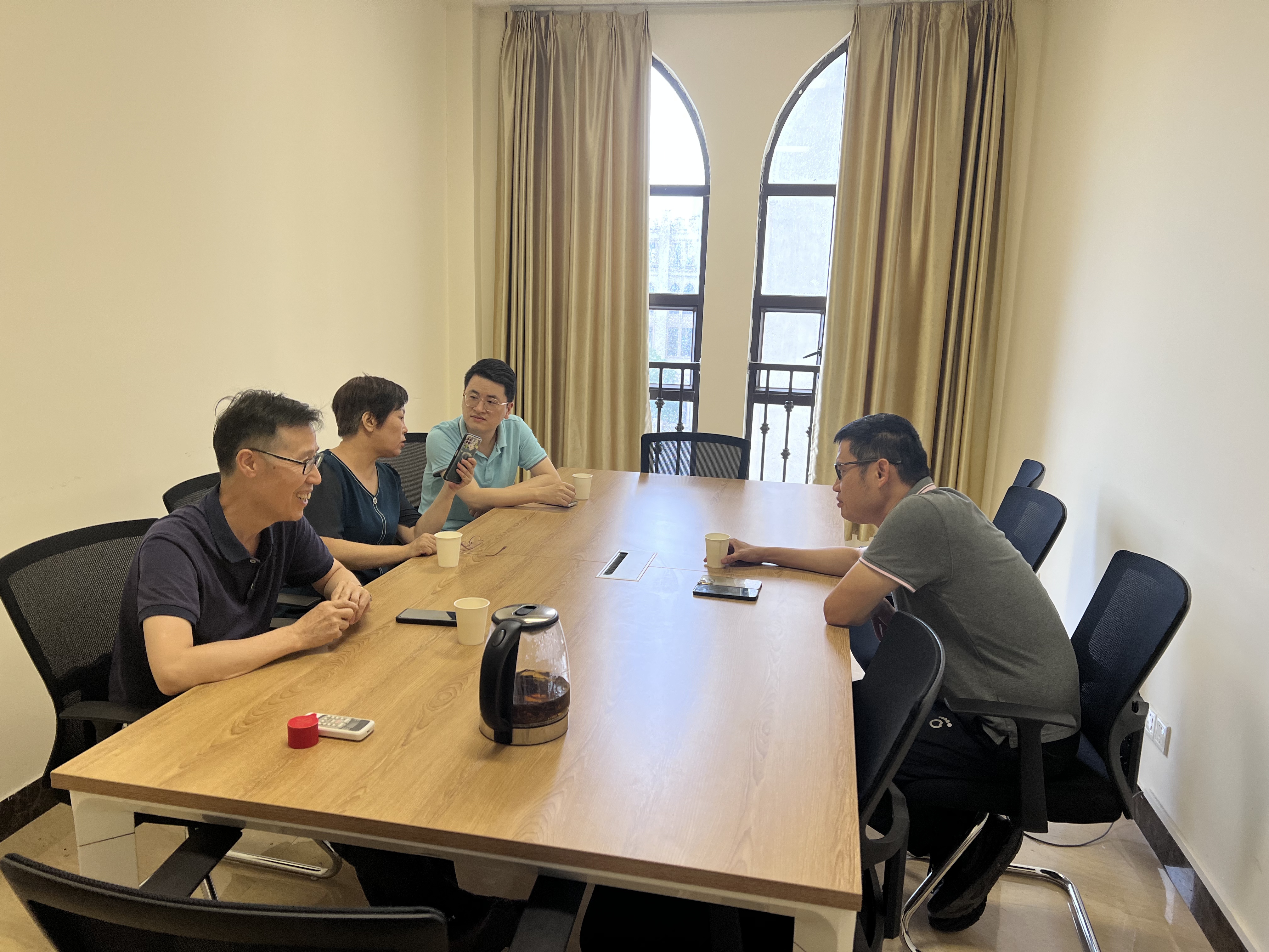 2025年5 月 6 日下午,广东鸿宇建筑与工程设计顾问有限公司肇庆分公司院长陈善智到访yl8cc永利线路检测中心,与yl8cc永利线路检测中心院长谭翠萍、副院长龙福贵及智能建造工程教研室主任区杰智就校企合作相关事宜进行洽谈。