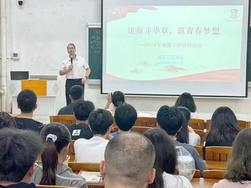 迎新工作培训会议于9月4日周三15:00举行,由团委书记田奎老师主持。江涛章书记在会议上强调,志愿者要做好迎新的工作,引导新生完成报道 ,做好资格审查、扫码注册、分配宿舍等工作。